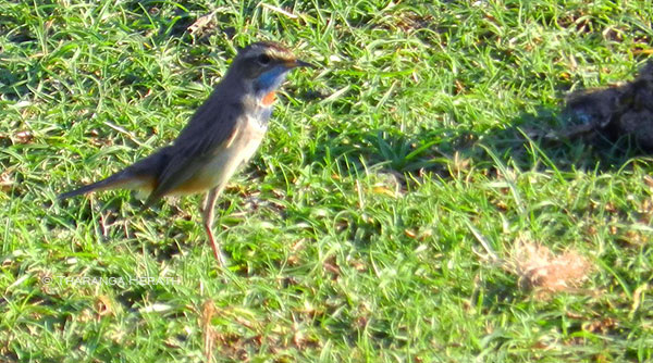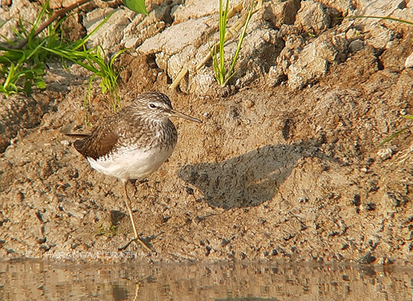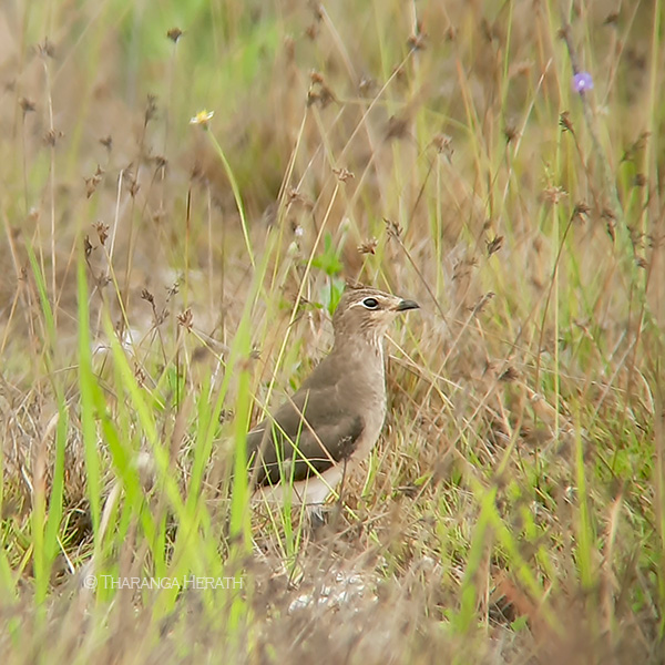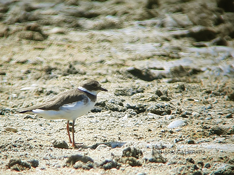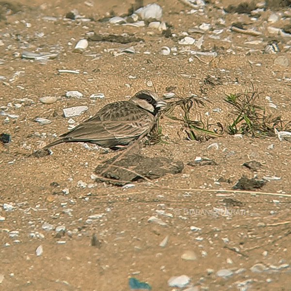 This year (2021) too at least three nests with birds sitting in each were seen by me on 16th April. At that time fields were abandoned temporily after the paddy harvest was taken, hence a suitable habitat had been created for the BWSs to breed. In my next visit with Tharu on 26th April, the fields were partially ploughed to cultivate the next season. Soon I noticed an active nest very unusually in the middle of a ploughed field and I shared my view with my daughter that I believe that the nest would have been relocated by farmers. Sadly the other nests have gone missing. In between this and the last visit a heavy overnight rain occurred that may have washed the other nests that could have affected by ploughing too. I observed the remaining nest from a distance through a fieldscope and captured several images by digi-scoping. In a moment when the incubating bird stood up to change its sitting position, I managed to see at least 3 pinkish eggs heavily speckled with brown.